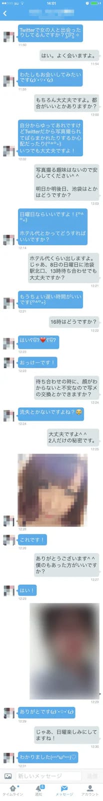 女性から初めてDMが来たのが、11時50分です。そして、会う約束をしてDMが終わったのが12時31分です。
